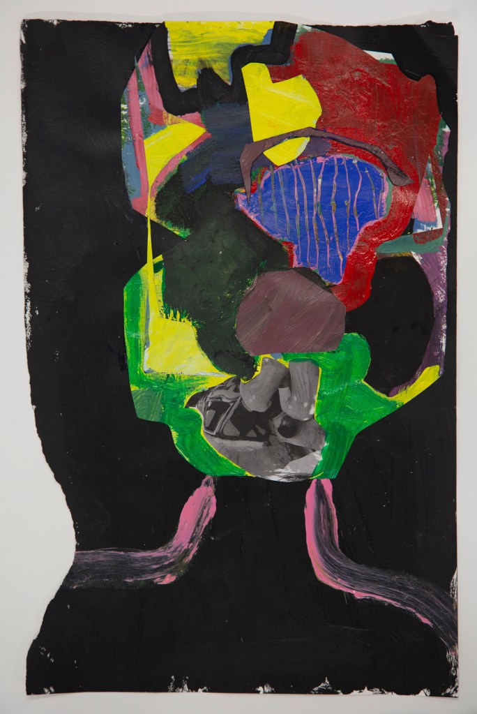 My work emerges as a developing process, it can start with collage made up of discarded defective prints, or it could emerge from Exhibition ephemera. I manipulate them by adding more cut out etchings. I choose one print and work in various ways, I destroy, push, pull, deconstruct, construct and collapse the image resolving in a process of constant abstraction and figuration, this is the thing which appears, not the thing in itself. I don’t have a preconceived idea it’s a call and response.