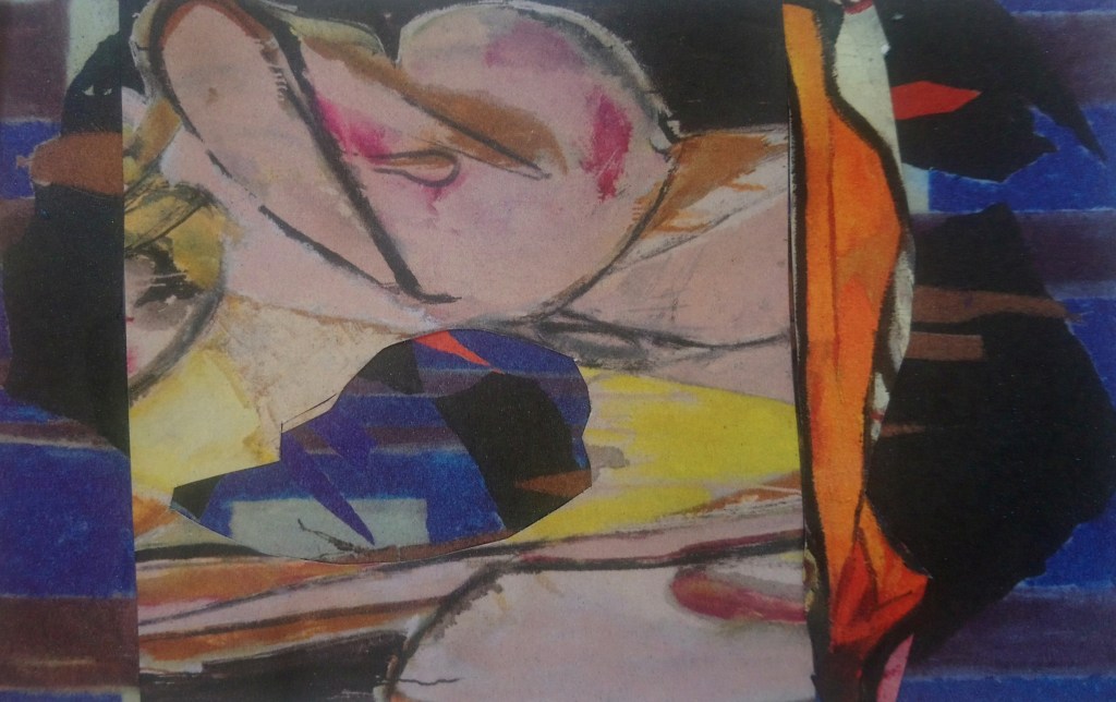 I saw the exhibition of Lee Krasner at Barbican and I was fascinated by the colours, the materials she used and the layering of different papers, this process of working influence me. My response of to the exhibition and the time spend in Barbican, was a collage layering papers that I collected in different times ,and looking for the interaction between the forms and the colours, I used the leaflet of the exhibition ,some papers I found at the Barbican and some old papers I had at home to create a collage, this different papers gives the sense of history of the marks left behind.