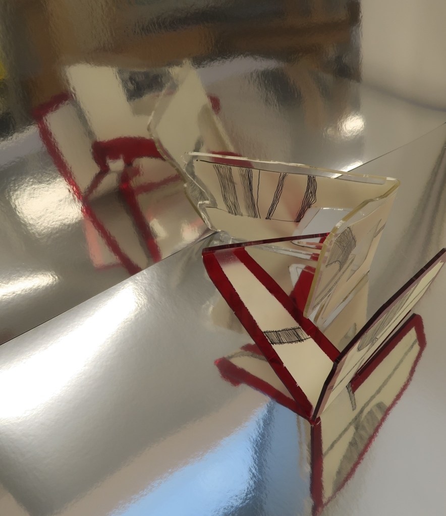 The bits and pieces of the outside giving connection of what is inside, but at the same time is so opposite, the box is the finish piece, the outside pieces are not so shiny, one doesn’t know if is in porpoise.